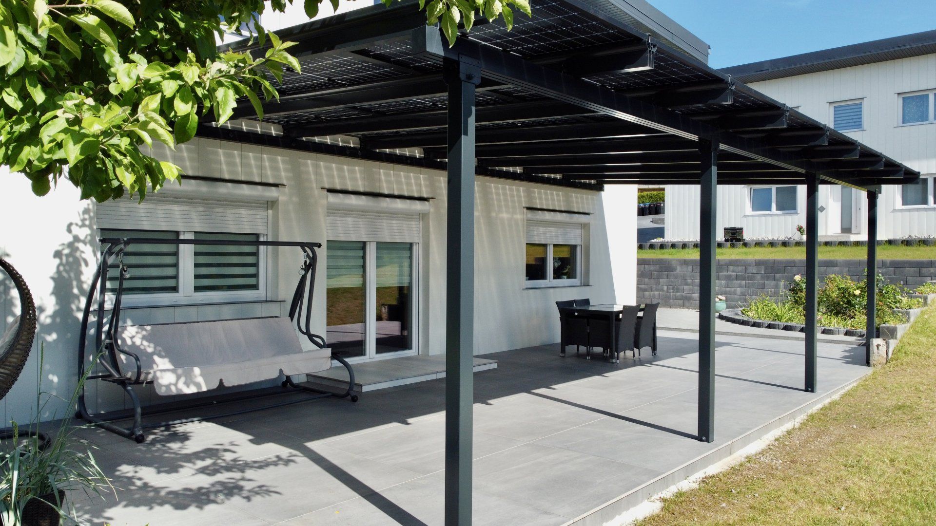 Passen Sie Ihr Solar Carport individuell nach Ihren wünschen an, indem Sie die Anzahl der Solarmodule verringern oder weitere hinzufügen.