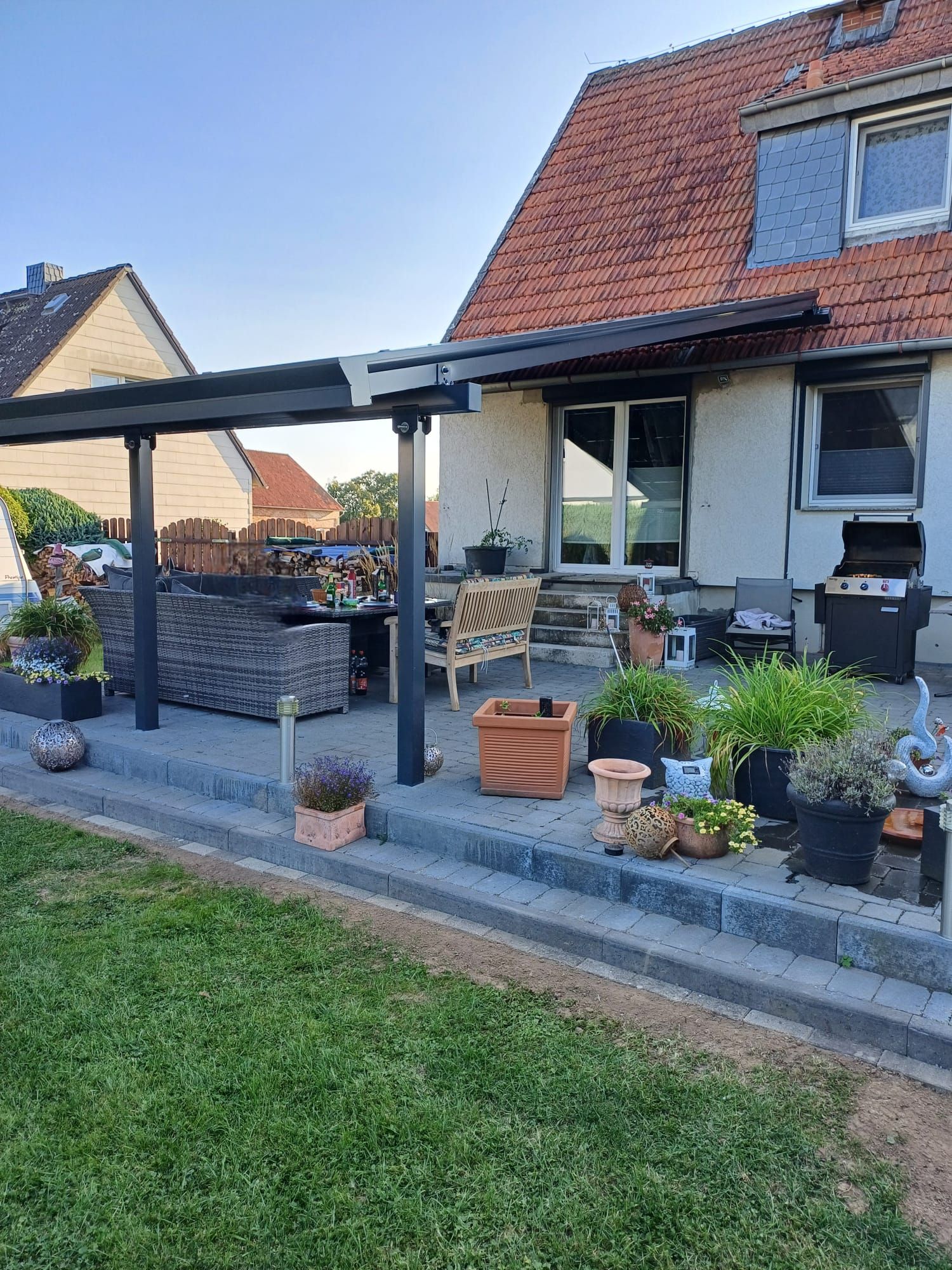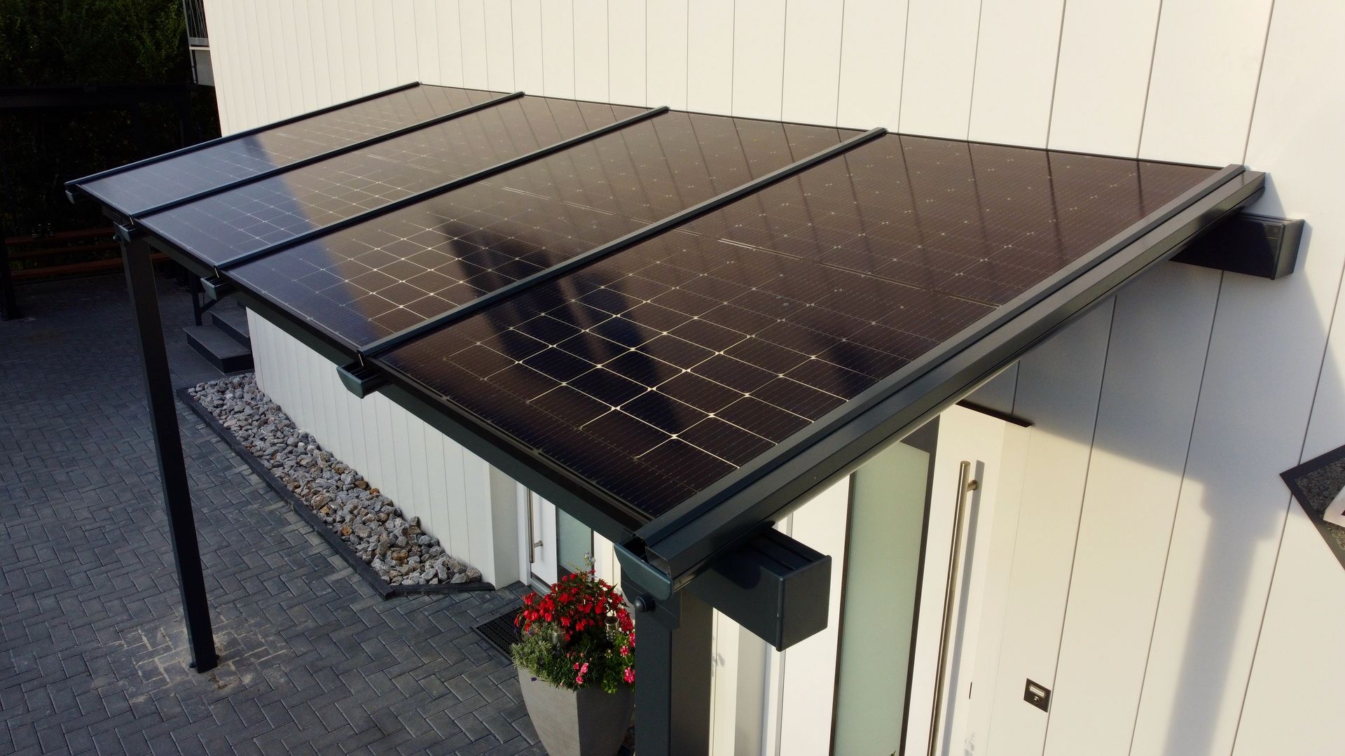 Mit einer Solarterrassenüberdachung haben Sie Ihre eigene Stromversorgung integriert in ihrem Terrassendach.